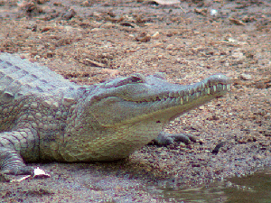 Mugger Crocodile (Crocodylus palustris) (literally "crocodile of the marsh"), also called the Indian, Indus, Persian, or marsh crocodile, is found throughout the Indian subcontinent and the surrounding countries. This is one of three crocodiles found in India, the other is a crocodile and saltwater crocodile.